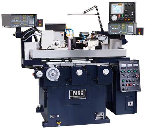 本機はスタンダードな円筒研削を極めるべく開発された究極の円筒研削盤です。全ての摺動面はキサゲ摺り合せ作業による手仕上げで構成されており、高精度・長寿命を約束します。さらに砥石軸の機械的切り込み追従精度及び復元制度±1µmを10年間保証しています。ワーク固定方式は①両センター ②スクロールチャック ③コレット等多彩なパターンが可能です。